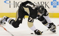 -In OT, one of the weirdest things happened. After a whistle 2 min. into the OT, a linesman called a 4 min penalty on Horton for high-sticking, not the main ref. Everyone was confused, especially Steigy and Errey. The Pens caught a break and an almost automatic 4 on 3 PP goal was scored. Gonch and Geno looked like ballerina's at the point and after a couple good scoring chances, it was this guy named Crosby who buried a Geno rebound past Vokoun, 3-2 Pens.